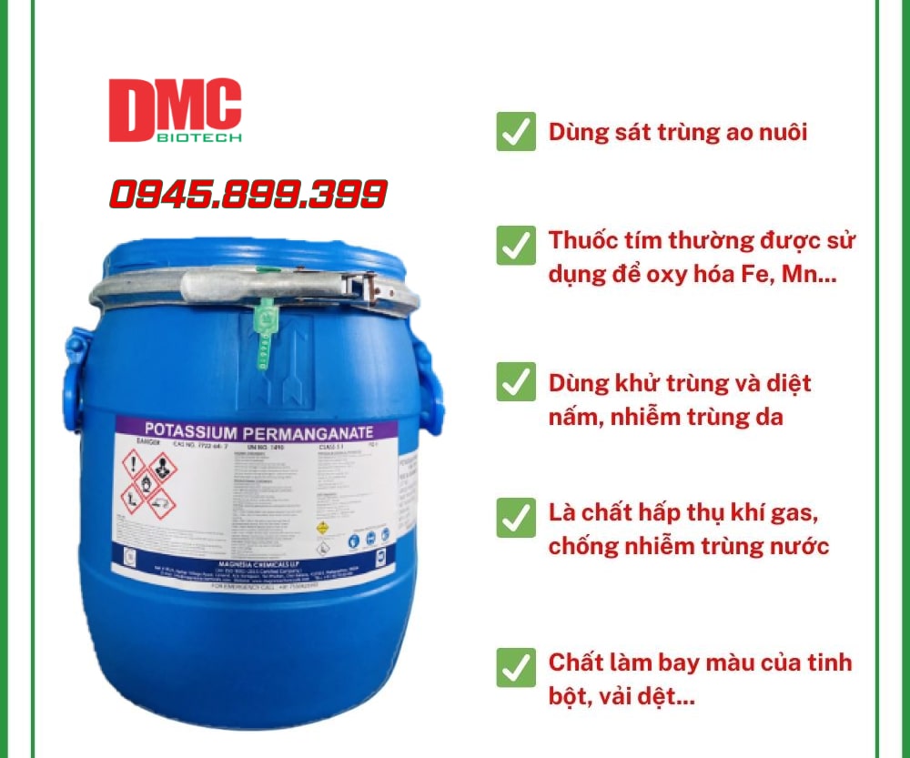 Vấn đề bảo quản hóa chất KMnO4 khi sử dụng trong nhiều ngành nghề, lĩnh vực là rất quan trọng. Vậy nên, nếu bạn muốn được hướng dẫn sử dụng và bảo quản hóa chất KMNO4 an toàn nhất, hãy liên hệ ngay DMC Biotech để được hỗ trợ nhanh chóng nhé!